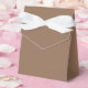 Die Gastgeschenk-Box ist in einer kräftigen Braunfärbung mit weißem Bandbogen abgebildet. Passen Sie diesen Artikel an und fügen Sie Ihren eigenen Text oder kaufen Sie, wie es ist.