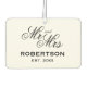 Mr. and Mrs. elegante Drehtypografie Gastgeschenk Hochzeit Lufterfrischer. Klassisches Design mit Nachname und Datum.