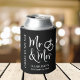 Geben Sie Ihren Hochzeitstoast und Ihren Hochzeitsgästen ein lustiges Andenken an Ihren besonderen Tag mit dieser speziellen schwarzen Dose Cooler mit "Cheers to the New Mr & Mrs." geschrieben in einer Mischung aus großen weißen Schrift und einfachen weißen Typografie und einer Illustration von zwei Hochzeitsringen vereint. Fügen Sie unten Ihren Namen und Ihr Hochzeitstermin hinzu.