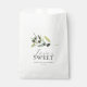 In dieser Gastgeschenk Hochzeit-Tasche finden Sie die Worte "Liebe ist süß" in trendiger Typografie. Der Ober wird von einem Olivenzweig mit Aquarellfarbe umrahmt. Verwenden Sie die Vorlagenfelder, um Ihre Namen, Ihr Hochzeitdatum oder Ihren benutzerdefinierten Text hinzuzufügen. Um mehr rustikale Hochzeitskunst zu sehen, besuchen Sie www.zazzle.com/dotellabelle Kunst und Design der Wasserfarben von Victoria Grigaliunas