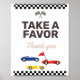 Laden Sie Ihre Party Gäste ein, sich einen Gefallen zu nehmen (oder den Text anzupassen) mit diesem Rennen Auto Thema Schild.