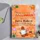 Ein einfaches modernes Design mit einem Aquarellskateboard Halloween Kürbis orange-rosa Einladung zum Geburtstag und Halloween mit Familie und Freunden für Skate Liebhaber