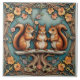 A square tile art nouveau illustration featuring three squirrels sitting on a tree branch. The squirrels are the focal point, each rendered with detailed fur and expressive eyes. They are positioned side by side, with the central squirrel facing forward and the other two turned slightly towards it.