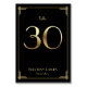Cartes de numéro de table du mariage Great Gatsby Art Déco avec numéro d'or 30 et texte modifiable, où vous pouvez ajouter vos noms et date de mariage, imprimé sur arrière - plan noir