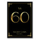 Cartes de numéro de table du mariage Great Gatsby Art Déco avec le numéro d'or 60 et le texte modifiable, où vous pouvez ajouter vos noms et la date du mariage, imprimé sur arrière - plan noir