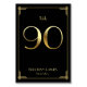 Cartes de numéro de table du mariage Great Gatsby Art Déco avec numéro d'or 90 et texte modifiable, où vous pouvez ajouter vos noms et date de mariage, imprimé sur arrière - plan noir