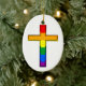 Christliches Kreuz in den Farben der Regenbogenflagge des Gay Pride.