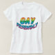 Shirt mit "GAY-freundlichem" Text in Regenbogenfarben.