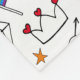 Dieses Kunstwerk weist ein Muster auf, das verschiedene Symbole für Gay Pride in einem farbenfrohen Design enthält.