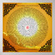 Von Wikipedia: Die Gāyatrī Mantra, auch bekannt als Sāvitri Mantra, ist ein hochverehrtes Mantra aus dem Rig Veda (Mandala 3.62.10), das der vedischen Gottheit Savitr gewidmet ist. Gāyatrī ist der Name der Göttin des vedischen Mantra, in dem das Vers komponiert ist. Ihre Rezitierung erfolgt traditionell durch die Formel bhūvaæ, die mahāvyāritti, die als "großartige (mystische) Äußerung" bekannt ist. Maharshi Vishvamitra hatte das Gayatri Mantra geschaffen. Das Gayatri Mantra wird in vedischen und postvedischen Texten weithin zitiert, wie z.B. in den Mantraauflistungen der Śrauta-Liturgie und in klassischen Hindu-Texten wie Bhagavad Gita, Harivamsa und Manusmritti. Das Mantra und die dazugehörige metrische Form war vom Buddha bekannt, und in einem Stra wird der Buddha als "Ausdruck ihrer Wertschätzung" für das Mantra beschrieben. Das Mantra ist ein wichtiger Teil der upanayana-Zeremonie für junge Männer im Hinduismus und wird seit langem von Dvija-Männern als Teil ihrer täglichen Rituale rezitiert. Moderne Hindureformbewegungen verbreiten die Praxis des Mantras auf Frauen und alle Kasten, und seine Verwendung ist inzwischen sehr weit verbreitet. Es gilt als eines der wichtigsten und mächtigsten vedischen Mantras. Hier wird das Mantra 108 mal wiederholt, über ein Bild der brennenden Sonne. Hier ist Swami Vivekenandas Übersetzung des Mantras: "Wir meditieren über die Herrlichkeit des Seins, das dieses Universum produziert hat; möge sie unseren Geist erleuchten."