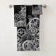 Serviette de style Steampunk, avec arrière - plan noir avec engrenages 3 dimensions en argent.