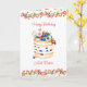 Sweet Personalisierte Geburtstagskarte. Niedlicher Aquarellstil in der Illustration eines Kuchens voller Blume, Heidelbeeren, Erdbeeren und Peitschencreme. Hübsche Geburtstagskarte für sie, eine Freundin, Oma, Tante, Schwester, Mutter, Tochter oder Enkelin.