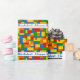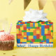 Gebäude blockiert alles- Gute zum Geburtstagverpackungs-Papier in den Farben von Blauem, von Rotem, von Gelbem, Orange und Grün. Fertigen Sie den Text besonders an, jedoch, das Sie wollen.