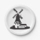 Eine schwarze Silhouette eines Gebäude aus Windmühle. Dieses Design wirkt auf diese Paper-Teller sehr effektiv