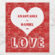 Delikates und hübsches, lebendiges Rubinrot, grau in Silbertönen und weißes Valentinstil-Muster mit doodle Spitzenherzen und Kirschblütenzweigen machen den Hintergrund eines schönen personalisierten Weinetiketts für einen besondere Anlass. Sein Name + ihr Name in einem großen weißen Herz = LIEBE Geben Sie Ihre Namen in die Flecken rechts ein. Drücken Sie die Taste CUSTOMIZE, um mehr zu personalisieren, indem Sie Schriftart, Textgröße und Textfarbe ändern und die Hintergrundfarbe ändern. Kann ein niedliches Geschenk für Ihr Valentin oder eine Leckerei für Ihr Valentinisches Party, Ihre Beziehung Jahrestag, Verlobung, Brautparty, Bachelorette oder Hochzeitsfeier sein