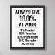 "Immer 100% schenken" Poster ist die perfekte Mischung aus Spaß und Motivation. Als Geschenk oder als lustige Ergänzung zu Ihrem eigenen Arbeitsbereich. Erhältlich sowohl als Druck als auch als Sofortdownload.