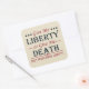 Geben Sie mir Freiheit oder Tod 4. Juli Quadratischer Aufkleber