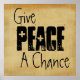 Geben Sie Peace A Chance Plakatdruck auf Vintagem Grunge Leinwand Stoff Hintergrund. Kriegsfeindlichkeit, Weltfrieden.