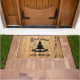 Doormat für die Zuhause. Silhouette von Bergen und Palmen, auf rustikalem Holzfußboden nach Ihrem Familiennamen gestaltet. Ideal für Ihre Zuhause/Ferien in den Bergen. Oder passen Sie Ihren Text für jede Verwendung an.