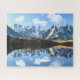 Dieses phantastische Getty Images Foto bietet Wanderern, die das Mont-Blanc-Massiv bewundern, das in Lacs des Cheserys, Chamonix, Haute Savoie, Frankreich spiegelt.