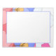 Ein Notizblock mit einem skurrilen Gebirgsrand. Die Farben sind pink, lila, gelb, aprikot.