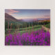Dieses phantastische Getty Images Foto besticht durch rötlich-lila Wildblumen mit Feueralgen in einer Bergwelt bei Sonnenaufgang.