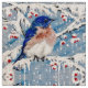 Eine Drossel sitzt glücklich in a unter St.-Stechpalmenbeeren während eines Schneesturmes. Das Gewebebild wurde von einer ursprünglichen Malerei durch internationalen Künstler-Jennifer See geschaffen.