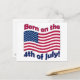 Geboren am 4. Juli, 4. Juli Postkarten, Einladungen. Waving American Fahne in den USA rot weiß und blau. Die USA waren am 4. Juli geboren. Vielleicht auch? Patriotische Erklärung für den Unabhängigkeitstag oder jeden Tag. Einfache Personalisierung für Ihre Nachricht oder 4. Juli Party Einladung.