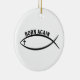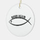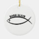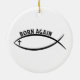 "Jesus Fish" (auch Ichthys genannt), das ein Kreuz für ein Auge hat. Der obige Text lautet "Geboren wieder".