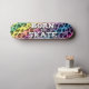 Cooles Skateboard mit einem trendigen Regenbogenleoparden Hintergrund mit dem Aufdruck "Geboren zum Skate" in einem weißen, modernen Graffiti-Schriftart.