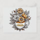 Kaffeetasse mit braunen und weißen Blume mit den Worten "Brautes Glück".