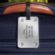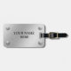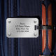Ein kundengerechter Gepäckanhänger mit einem gebürsteten Aluminiumeffekt und Schrauben.