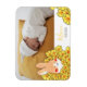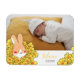 Elegante Geburtsanzeige mit Magnet, Foto und Zeichnung eines niedlichen Hasen und Blumen. Ideal, um ein unvergessliches Andenken für die ganze Familie und Freunde zu schaffen.