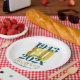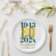 Eine wunderschöne 80. Geburtstagsfeier oder eine Feier mit Papierteller. Ein fabelhaftes Blau- und Goldeffekttypografie-Design - perfekt zum Feiern eines achtzigsten Party. Dieser stilvolle Teller zeigt die Geburtsdaten und die aktuellen Termine zum 80. Geburtstag.