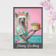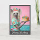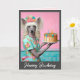 Chinesisch Crested Hund Lady mit einem Geburtstagskuchen mit drei Kerzen. Anpassbare Grußkarte mit der Option, Text und Bilder zu ändern, indem Sie auf Diese Vorlage personalisieren klicken.