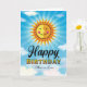 Lassen Sie Ihren Schwiegervater sich an seinem Geburtstag besonders fühlen, indem Sie ihm diese fröhliche, zauberhafte, gelb und orange Sonne schicken, die im blauen Himmel mit Wolken schwebt. Im Text steht: "Die Sonne scheint an dem Tag, an dem du geboren warst, nur etwas heller."