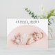 Einfache Geburtsankündigungskarte mit einem weißen Bogenrahmen mit dem Bild Ihres Neugeborenen.