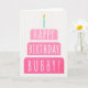 Geburtstagskarte für Bubby. Wenn du deine Großmutter Bubby statt Oma anrufst, ist diese Geburtstagskarte perfekt für sie. (Bubby bedeutet Großmutter auf Jiddisch.) Ihre Blase wird auch das farbenfrohe, rosa-farbene Gradientendesign dieser Geburtstagskarte mit einem Geburtstagskuchen mit der Aufschrift "Glücklicher Geburtstag Bubby!" Liebe geben. Machen Sie diese Karte anpassbar! Klicken Sie auf "Design bearbeiten", "Unten/Rechts: Text & Bilder", "Text" und "Text hinzufügen", um Ihre eigene, personalisierte Nachricht nach Bubby zu schreiben!