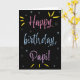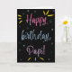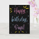 Du nennst deinen Vater Papi, nicht Vater. Stellen Sie sich vor, wie aufgeregt Papi sein wird, eine Geburtstagskarte zu erhalten, die speziell an ihn adressiert ist! Ihre Papi werden auch das farbenfrohe Feuerwerk-inspiriert Design dieser Karte (gelb, rosa, blau und lila auf schwarzem Hintergrund) mit der Aufschrift "Glücklicher Geburtstag, Papi!" Liebe.