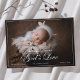 Stellen Sie Ihren kleinen Segen mit dieser herzlichen, von Glauben inspirierten Babyankündigung vor. Mit dem Satz "Begegnen Sie unsere wunderschöne Erinnerung der Liebe Gottes" präsentiert diese Fotokarte Ihr Neugeborenes mit minimalem Schriftzeichen und einem gepflegten, eleganten Design. Diese Ankündigung ist perfekt, um Ihre Freude mit den Lieben zu teilen. Sie ist ein berührender Ausdruck von Liebe, Glauben und Dankbarkeit.