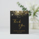 Eine Dankeschön-Karte für einen 50. Geburtstag (oder jedes Alter). Schwarze Hintergrundfarbe, mit goldenem Glitzer aus Imitaten dekoriert. Vor dem großen goldfarbenen handgeschriebenen Drehbuch und dem Text: Danke, Ihr Text, Ihr Titel und ein Datum. Zurück: Vorlage für Ihren Dank Notiz und Name.