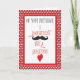 Jedermann, das ihren Geburtstag am Tag des Valentines wird Liebe diese Schnurrbartkarte feiert. Ein modischer Blick, die schwarzen und roten Herzen und die Mitteilung geben eine Spaßberufung. Weiße Herzen geben einen Beschaffenheitsblick zum Hintergrund.