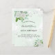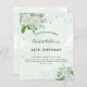 Eine moderne, stilvolle und glamouröse Einladung für die 40. (oder jedes Alter) Geburtstagsfeier einer Frau. Der grüne Hintergrund ist wasserfarben, mit Imitaten aus silberfarbenem Glitzer und weißen Blumen und Grünpflanzen. Der Name ist mit einem modernen, schwarzen Handschrift geschriebenen Stil geschrieben. Personalisieren und fügen Sie einen Namen, ein Alter und Ihre Party-Daten hinzu