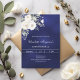 Für ein elegantes Party im Winter. Marineblau, uneinheitlich gefärbter Hintergrund mit weißen Blumen und Rose. Personalisieren und fügen Sie Ihren Namen und Ihre Daten hinzu.