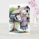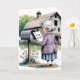 Eine Großmutter steht neben einem Briefkasten und liest einen Brief vor dem Hintergrund einer rustikalen Scheune und blühenden Blume zu ihrem Geburtstag. Der Insider-Text kann geändert werden.