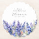 Perfekte Tischdekoration für eine Geburtstagsfeier im Juli. Blauer Larkspur (Delphinium) ist die Blume der Geburt für diesen Monat. Er bildet einen hübschen, wasserfarbenen Boden an diesem blumengeschmückten, personalisierten Untersetzer mit geschliffenen Kanten. Der Name, das Alter und das Geburtsdatum des Geburtstags werden mit eleganter Kalligraphie und Typografie darüber platziert. Alle Texte können bearbeitet werden.