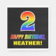 Dieses lustige, farbenfrohe und fröhliche Geburtstagspapier serviert eine große Zahl "2" und die Meldung "HAPPY BIRTHDAY", beide mit einem inspirierten Farbverlauf des Regenbogenspektrums, zusammen mit einem kühnen gelben personalisierten Empfängernamen. Der Hintergrund ist schwarz. Geburtstagsgezapftete Servietten wie diese können bei einem Party zum zweiten Geburtstag von jemandem verwendet werden. [~Z0000476]