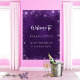 Ein Willkommensgruß für eine mädchenhafte und glamouröse 40. Geburtstagsfeier (oder jedes Alter). Ein tiefer lila Hintergrund mit Glitzer aus Imitaten, Glitzern. Die lila Farbe ist ungleichmäßig. Personalisieren und einen Namen.