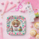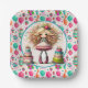 Eine farbenfrohe Mädchen-Geburtstags-Papierplatte mit quirligem Mädchen in der Mitte mit Geburtstagskuchen