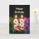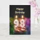 Ein Geburtstagskuchen mit Kerzen. Die Kerzen bestehen aus der Nummer 98, zu einem 98. Geburtstag. Eine Geburtstagskarte für jeden geeignet.